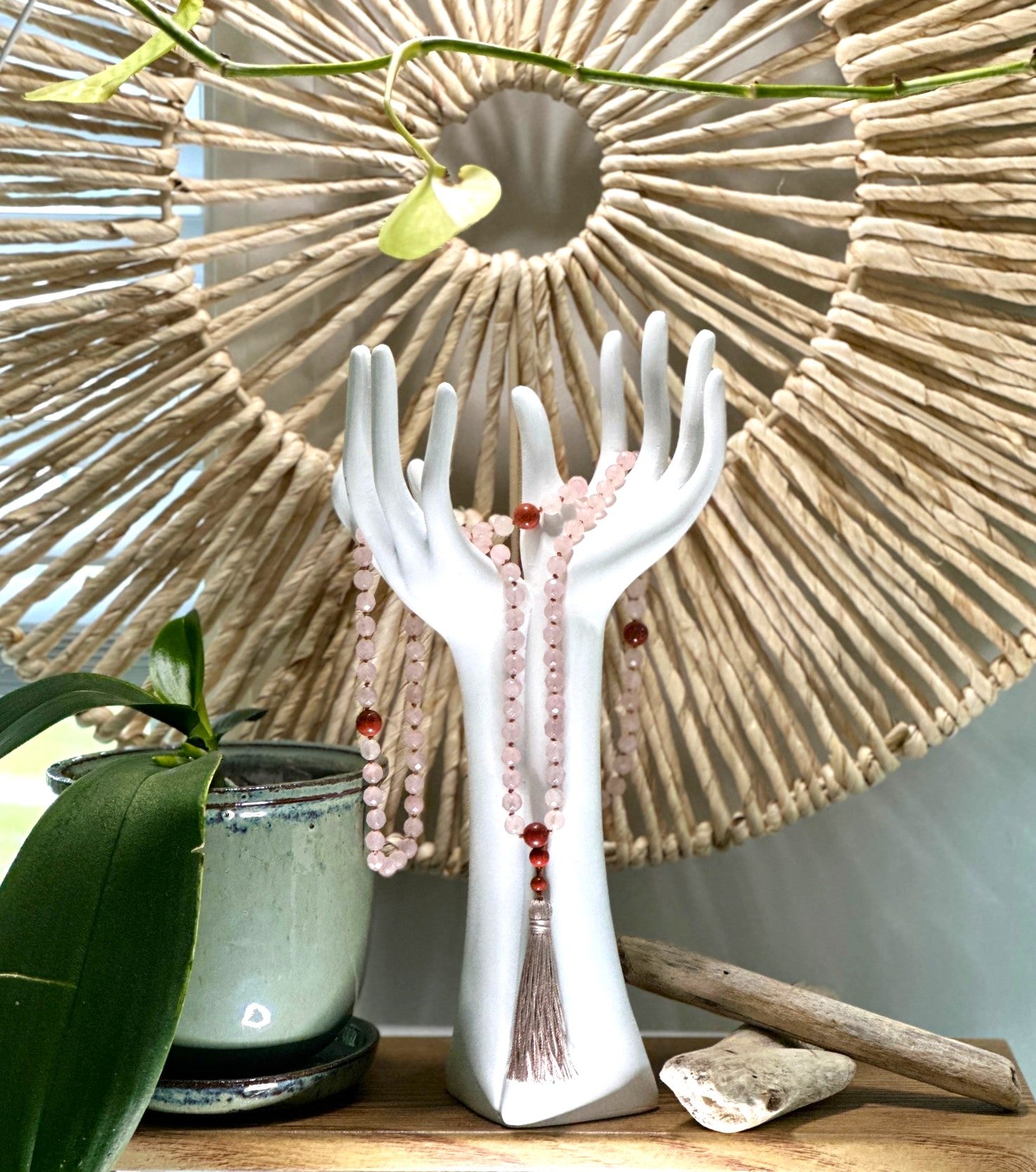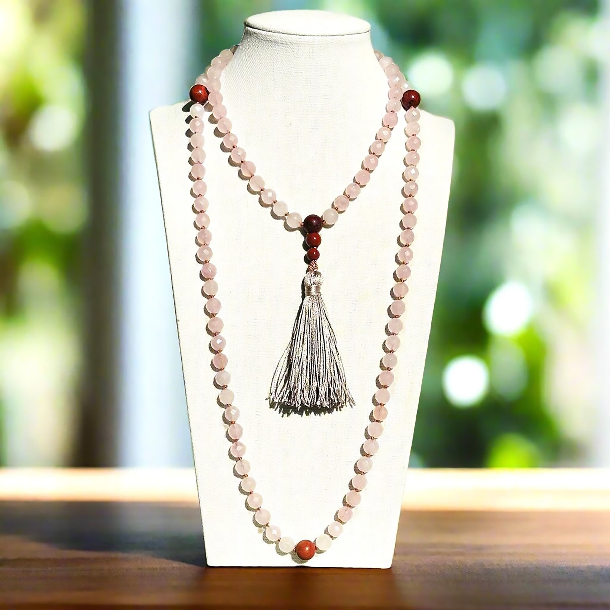 Genuine Rose Quartz and Red Jasper Gemstone Mala